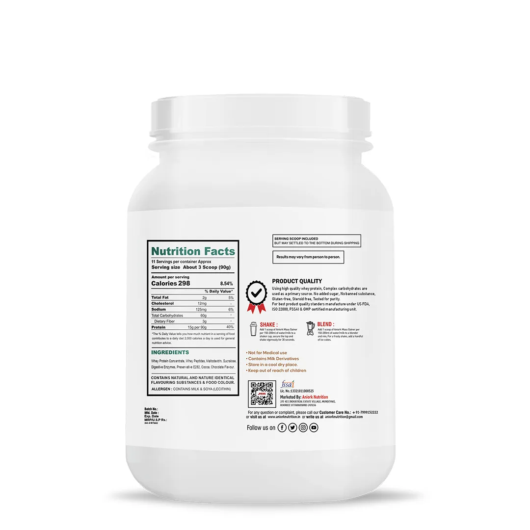 1. Promotes Healthy Weight Gain: Gaining weight can be challenging for individuals with fast metabolisms or high activity levels. Aniork Mass Gainer 1kg provides 298 kcal per serving, delivering a calorie surplus necessary for effective weight gain. The calorie content is strategically balanced to support healthy and gradual weight increase without leading to excessive fat accumulation.
